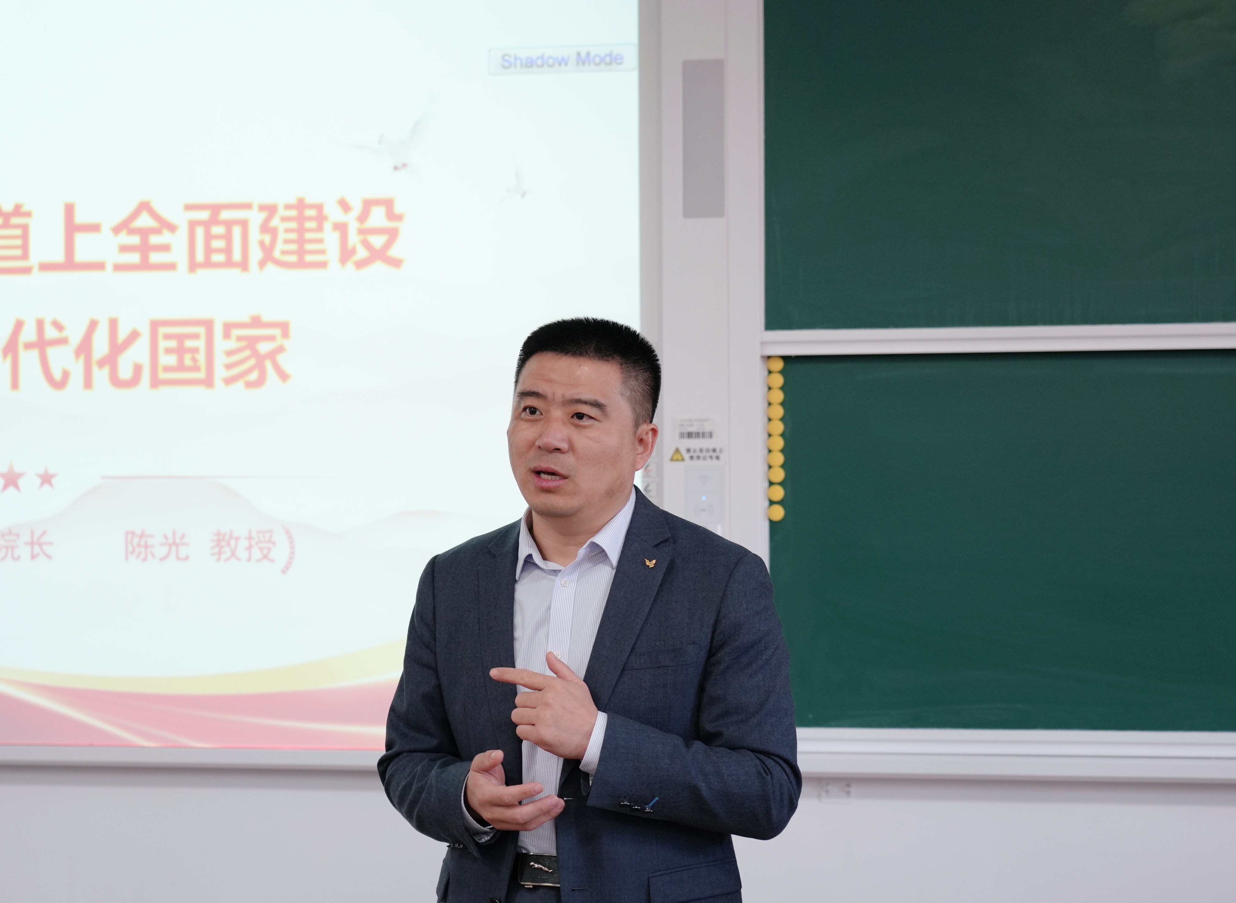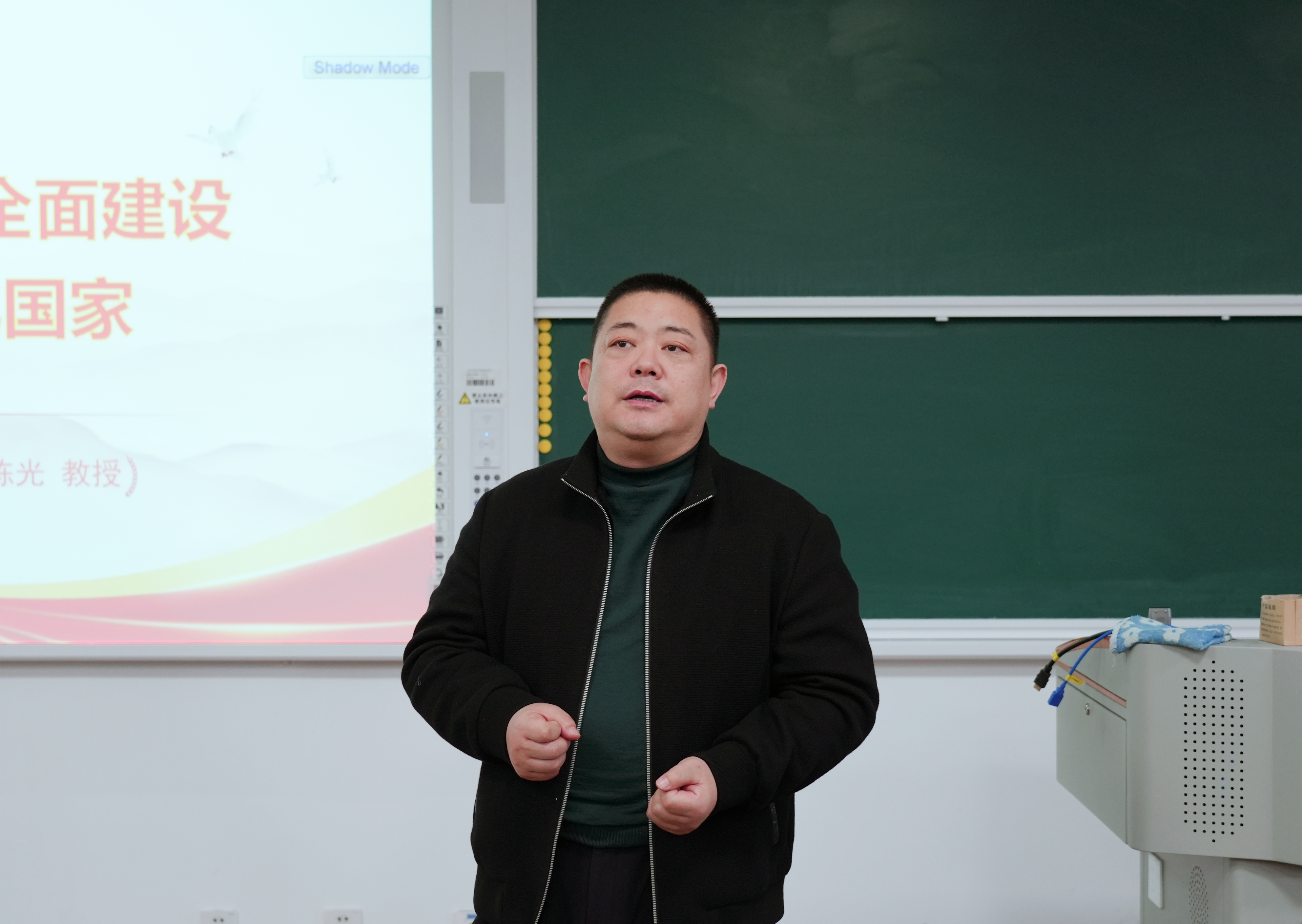 本次主题论坛特邀我院院长、博士生导师陈光教授作题为《坚持在法治轨道上全面建设社会主义现代化国家》的主旨报告。陈光教授从历史逻辑、理论逻辑与实践逻辑三个维度,系统阐释了法治建设在中国式现代化进程中的核心地位与保障作用。他强调,宪法是国家的根本法,坚持依法治国首先要坚持依宪治国,全面贯彻实施宪法是建设社会主义法治国家的首要任务和基础性工作。整场报告立意高远、内涵丰富、论述精辟,兼具学术深度与现实关怀,为与会者带来了一场深刻的法治思想启迪。